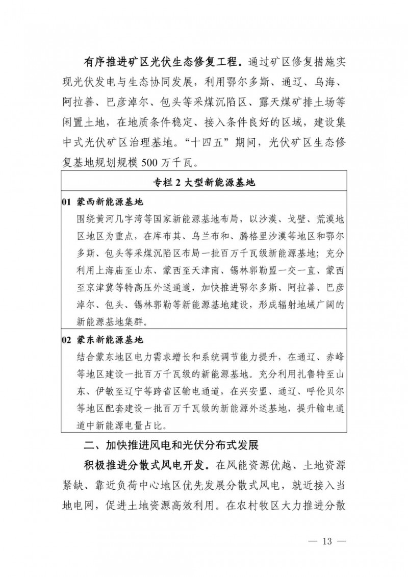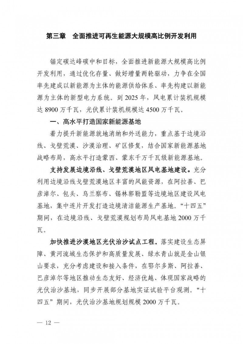 3月3日,內(nèi)蒙古自治區(qū)能源局網(wǎng)站公開發(fā)布了“內(nèi)蒙古自治區(qū)能源局關(guān)于印發(fā)《內(nèi)蒙古自治區(qū)“十四五”可再生能源發(fā)展規(guī)劃》的通知(內(nèi)能新能字〔2022〕103號(hào))”,根據(jù)規(guī)劃,“十四五”時(shí)期,我區(qū)可再生能源主要發(fā)展目標(biāo)如下: