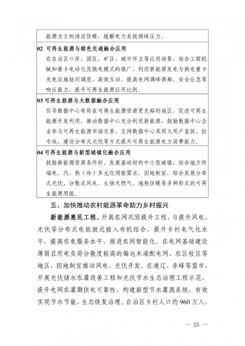 可再生能源總量目標(biāo)。至2025 年,自治區(qū)可再生能源生產(chǎn)總量超過(guò) 9000萬(wàn)噸標(biāo)準(zhǔn)煤,可再生能源區(qū)內(nèi)利用量超過(guò)6000萬(wàn)噸標(biāo)準(zhǔn)煤,占當(dāng)年一次能源消費(fèi)總量的18%以上,超過(guò)全國(guó)平均水平。