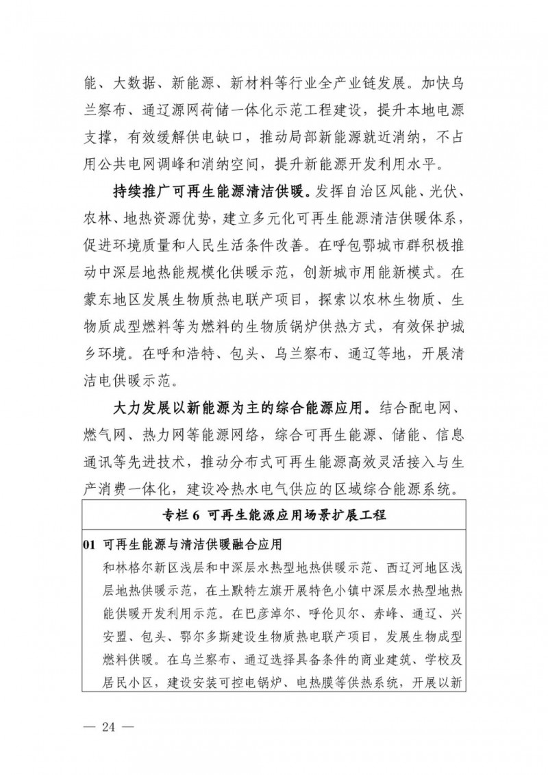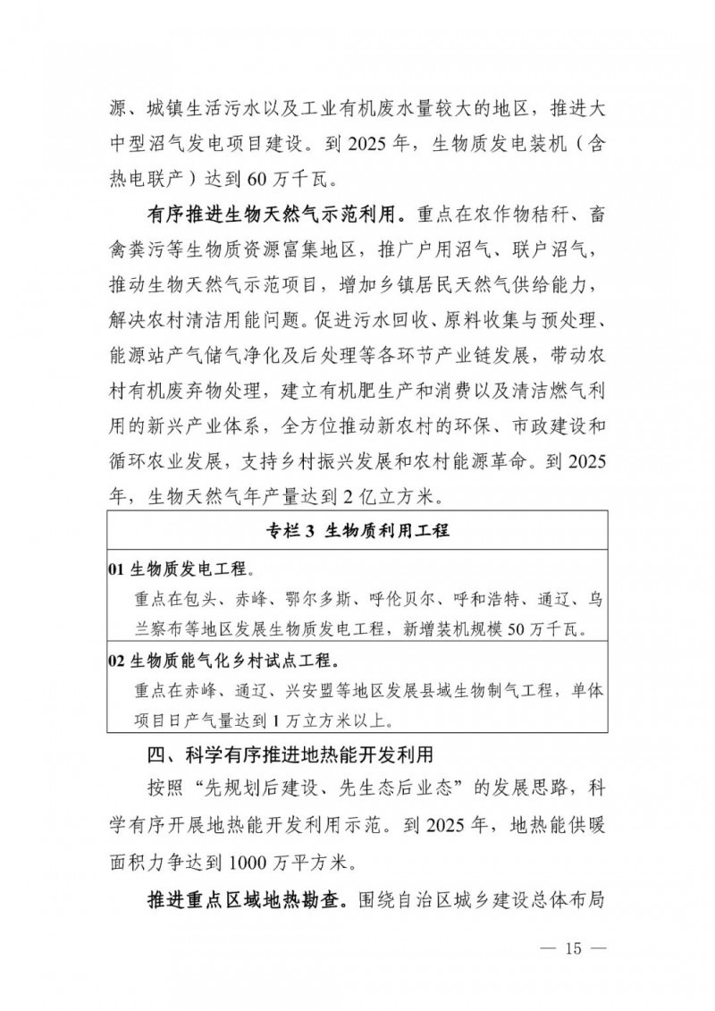 可再生能源供熱目標(biāo)。自治區(qū)地?zé)崮?、生物質(zhì)能、 太陽(yáng)能供暖和新能源電力供暖利用規(guī)模顯著提升。全區(qū)可再生能源供暖面積達(dá)到 3600 萬(wàn)平方米,“十四五”期間新增2500 萬(wàn)平方米。