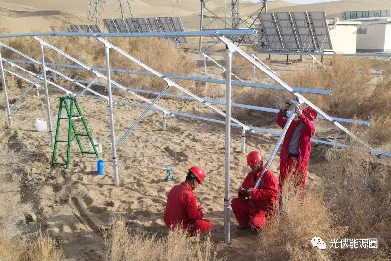從1月18日人員入場(chǎng)平整場(chǎng)地開始,施工人員每天都自帶午餐加快施工進(jìn)度。3月初太陽能設(shè)備到場(chǎng)后,施工人員按照施工工序全面鋪開。截至目前,86個(gè)螺旋樁基礎(chǔ)已全部完成,安裝支架30個(gè),安裝太陽能板4個(gè)。