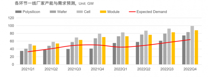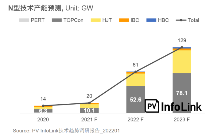 在PVInfolink的技術(shù)趨勢報(bào)告中,到2022年底,N型產(chǎn)能將突破80GW。但對于產(chǎn)業(yè)鏈來說,這80GW的數(shù)字背后,意味著從多晶硅、硅片、電池到設(shè)備等上下游環(huán)節(jié)的快速匹配,同時(shí)還需要考慮的是成本、出貨與市場。