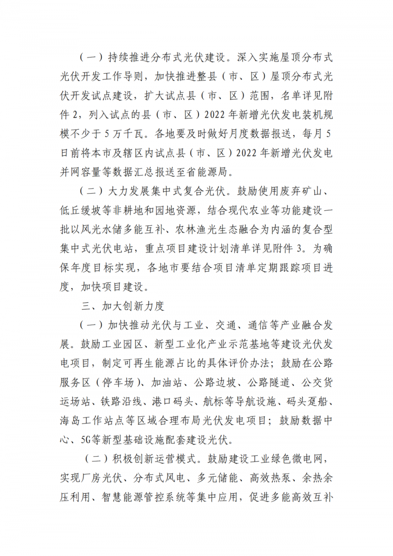 除此外,浙江省能源局要求持續(xù)加快分布式光伏建設(shè),并擴大整縣(市、區(qū))屋頂分布式光伏開發(fā)試點建設(shè)范圍,新增36個整縣試點名單,列入試點名單縣(市、區(qū))2022年光伏新增不得少于50MW,總規(guī)模為1.8GW。