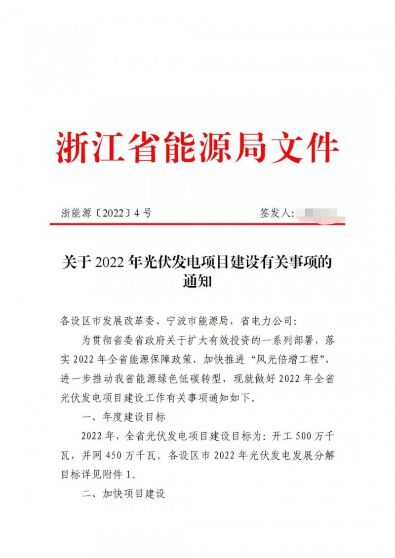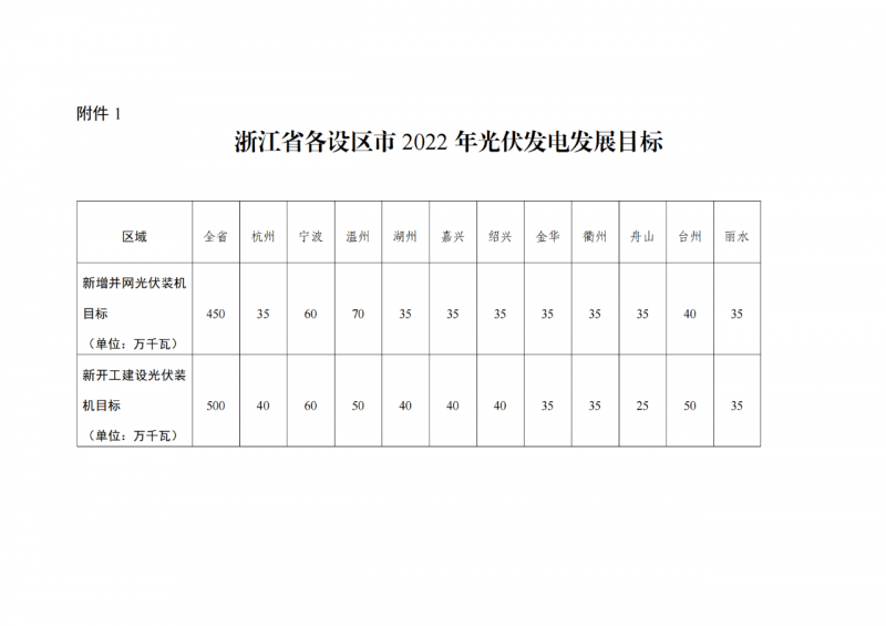 3月21日,浙江省能源局下發(fā)《關(guān)于2022年光伏發(fā)電項目建設(shè)有關(guān)事項的通知》,規(guī)劃2022年全省光伏建設(shè)目標為并網(wǎng)4.5GW,開工5GW,并對各市的光伏發(fā)電發(fā)展目標進行了分解。