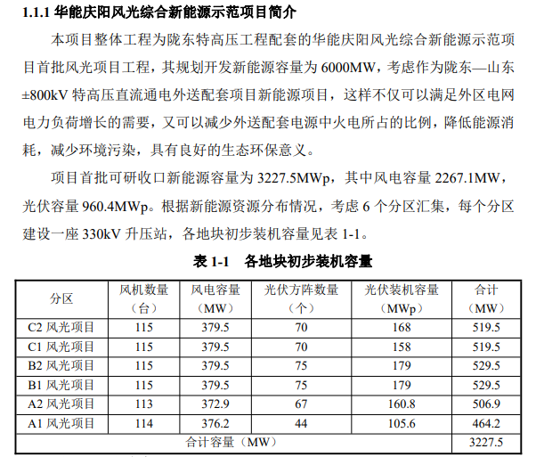 隴東特高壓工程配套新能源華能慶陽風(fēng)光綜合新能源示范項目: