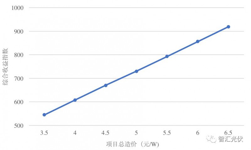 當(dāng)經(jīng)營成本按照0.1元/W考慮時,不同“初始投資”下,IRR要達(dá)到8%,“綜合收益指數(shù)”對應(yīng)的數(shù)值如下圖所示。