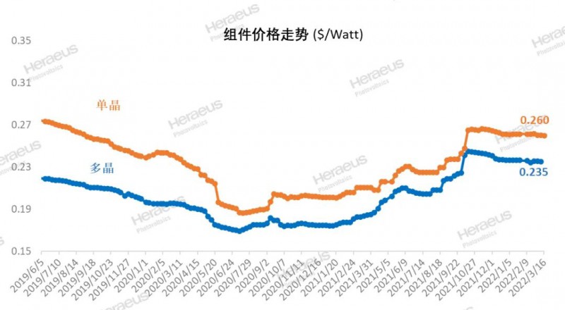 組件端雖然受到原材料價(jià)格上漲及市場影響,但其價(jià)格并未出現(xiàn)明顯的波動。