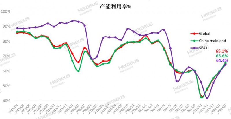 全球光伏開機(jī)率較上月持續(xù)改善,今年本月開機(jī)率已經(jīng)上升至65%。