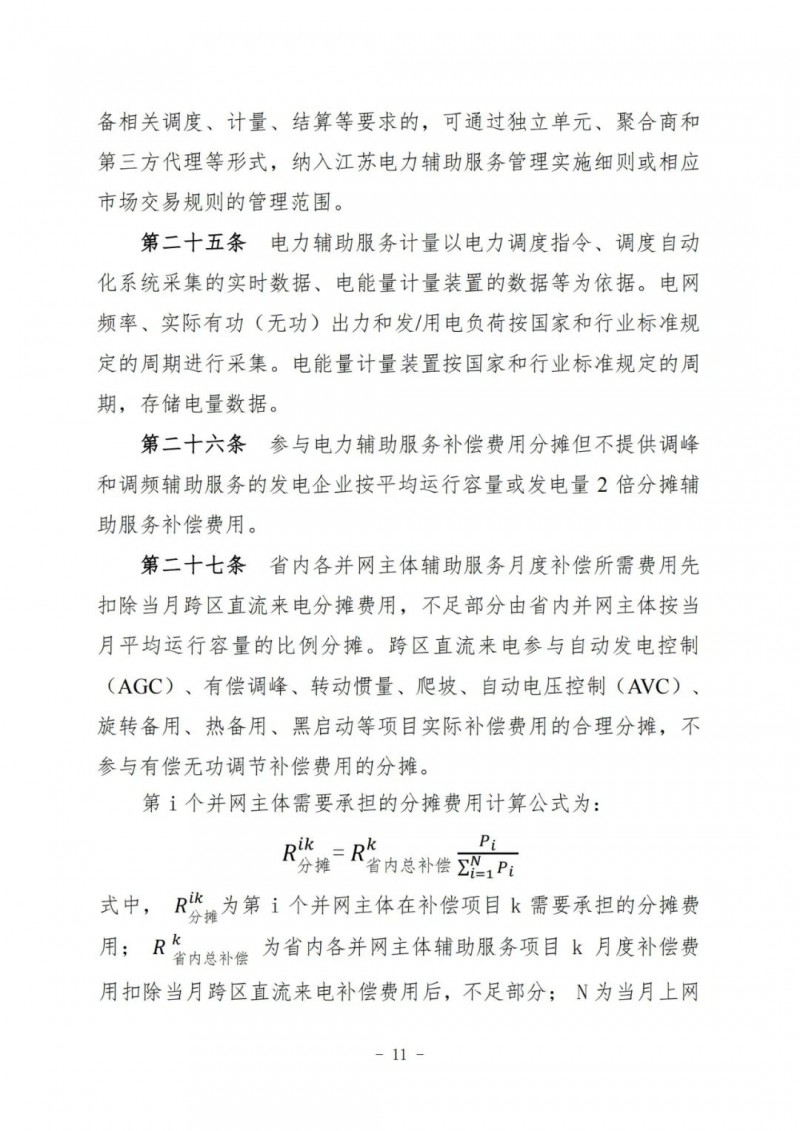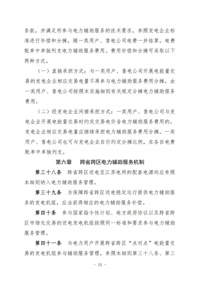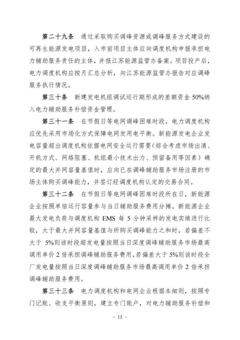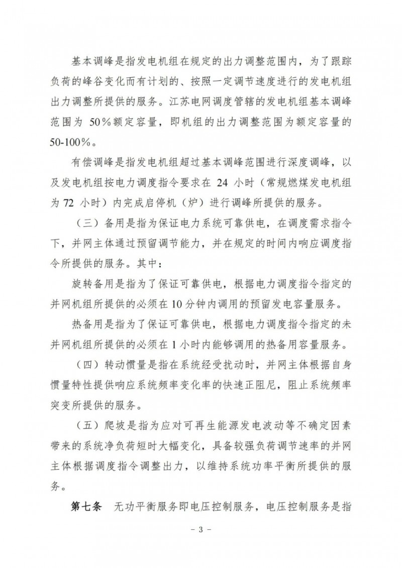 江蘇電力輔助服務(wù)管理實施細(xì)則(征求意見稿)