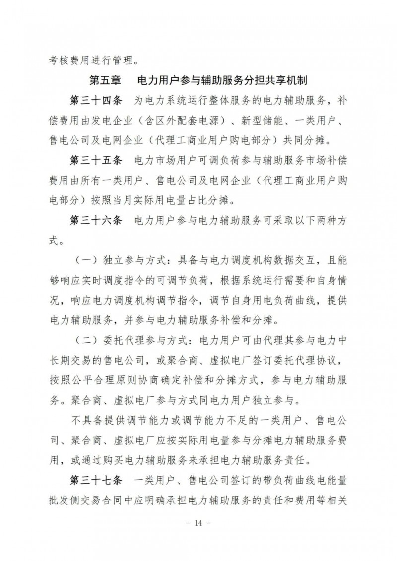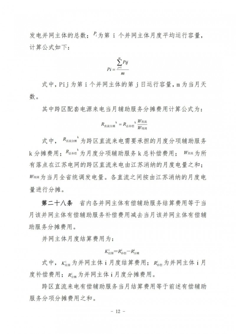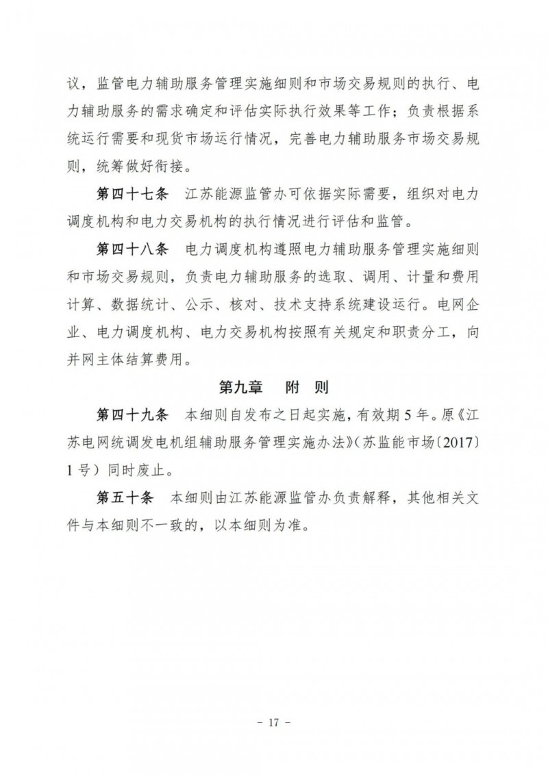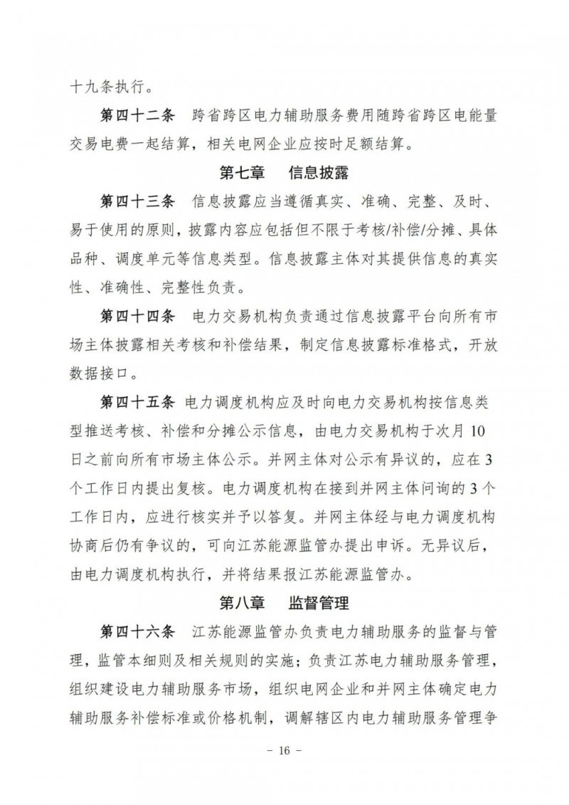 江蘇電力輔助服務(wù)管理實施細(xì)則(征求意見稿)