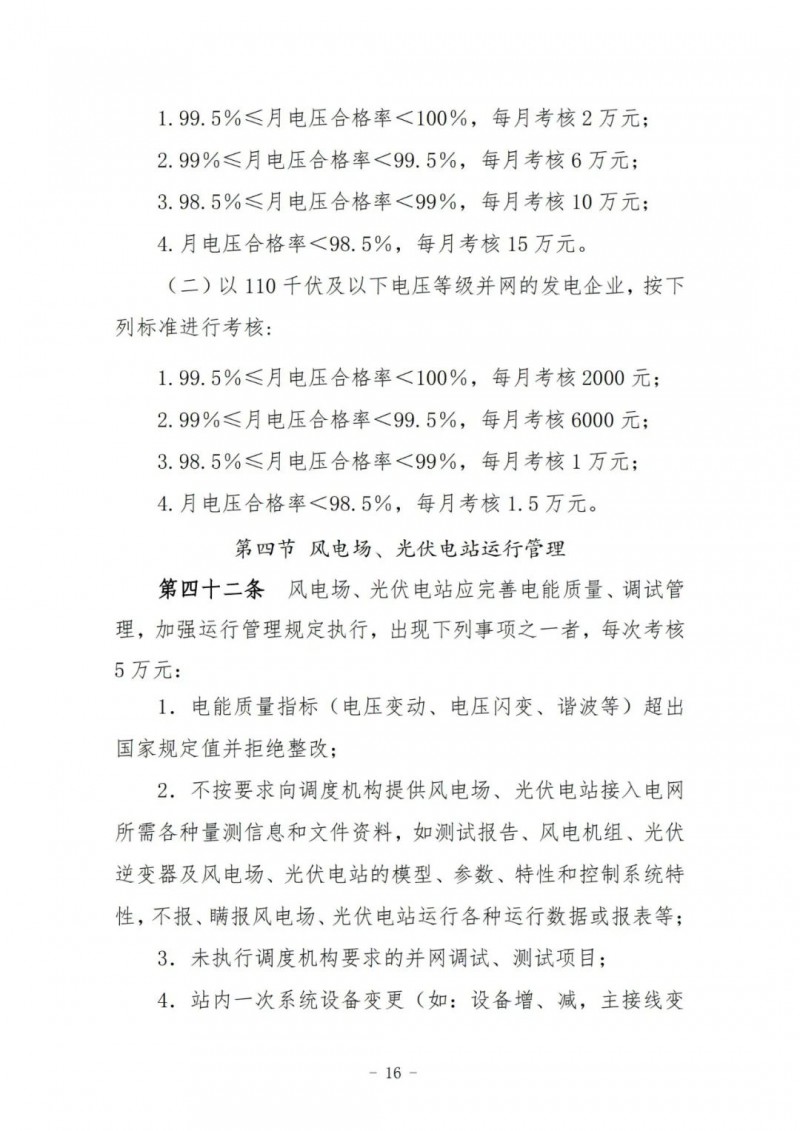 風(fēng)電場、光伏電站執(zhí)行并網(wǎng)主體運行管理考核及風(fēng)電場、光伏電站運行考核,其考核費用返還按當(dāng)月所有風(fēng)電場、光伏電站額定容量(含配套儲能)比例分別計算分配。