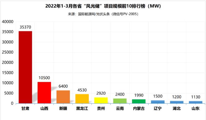 儲(chǔ)能將成為眾多風(fēng)電、光伏項(xiàng)目的標(biāo)配。據(jù)國際能源網(wǎng)/光伏頭條(pv-2005)不完全統(tǒng)計(jì),2022年1-3月,全國共簽約/規(guī)劃風(fēng)光儲(chǔ)項(xiàng)目29個(gè),已明確的項(xiàng)目規(guī)模為69.29GW,已明確的投資金額為1789.42億元。