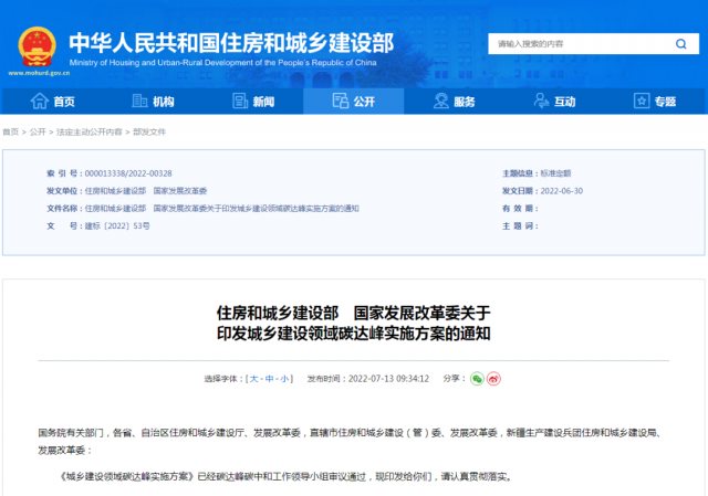 印發(fā)城鄉(xiāng)建設(shè)領(lǐng)域碳達峰實施方案的通知
