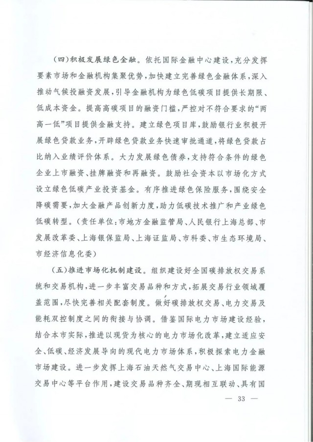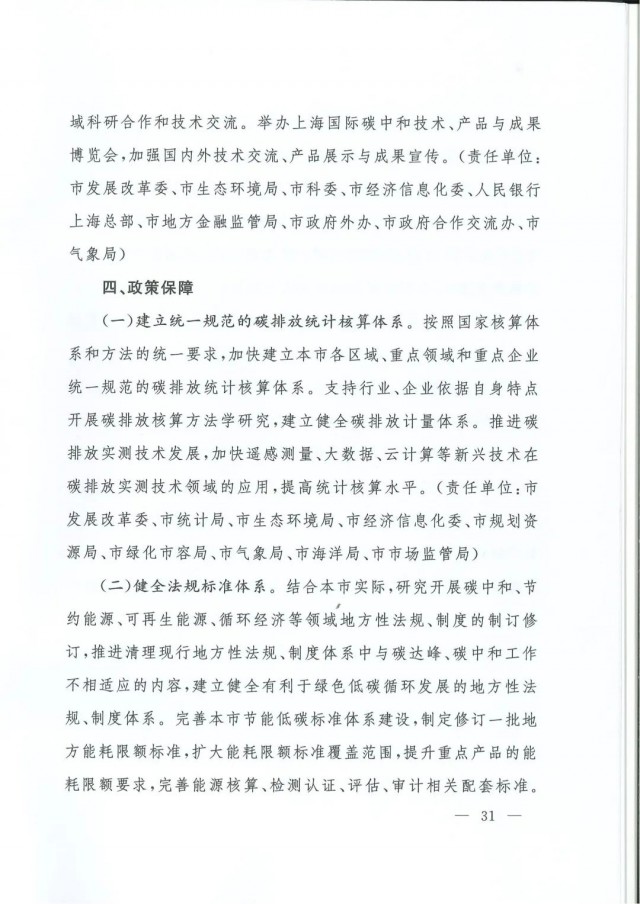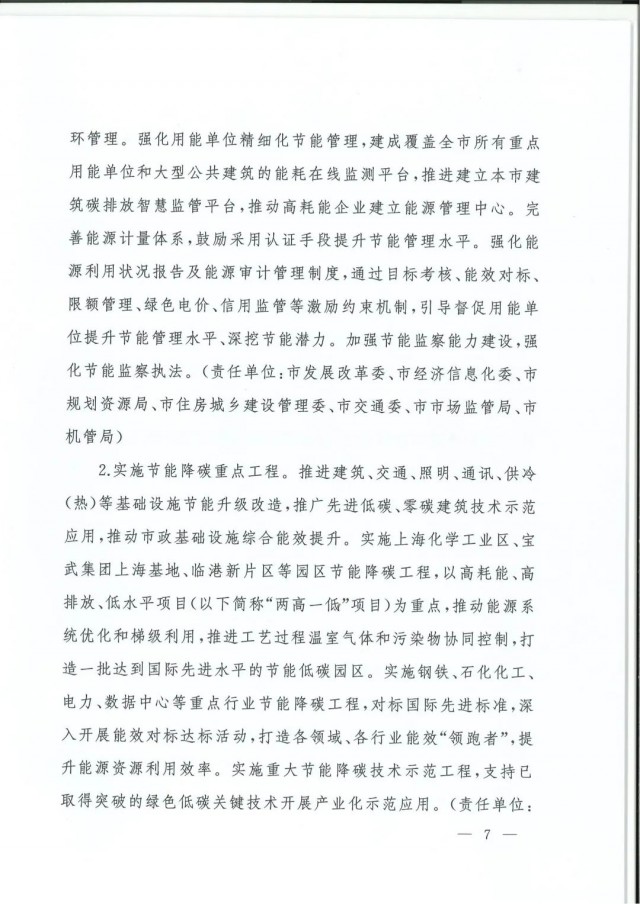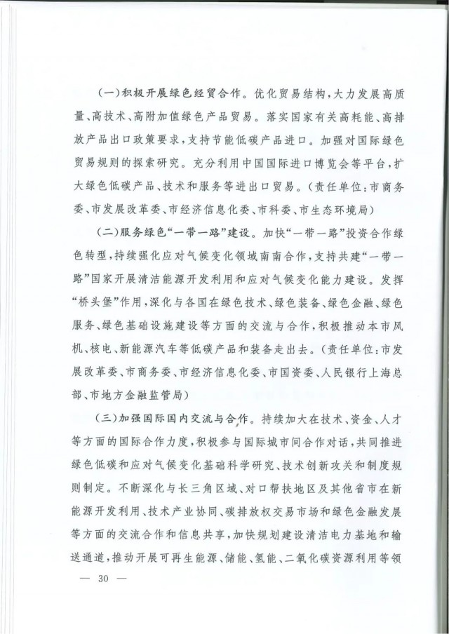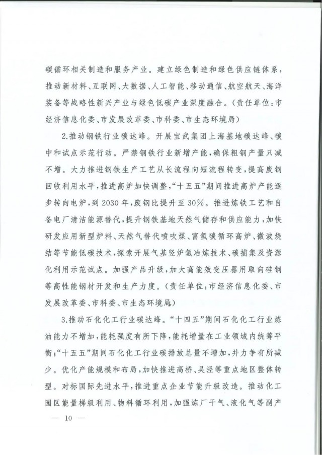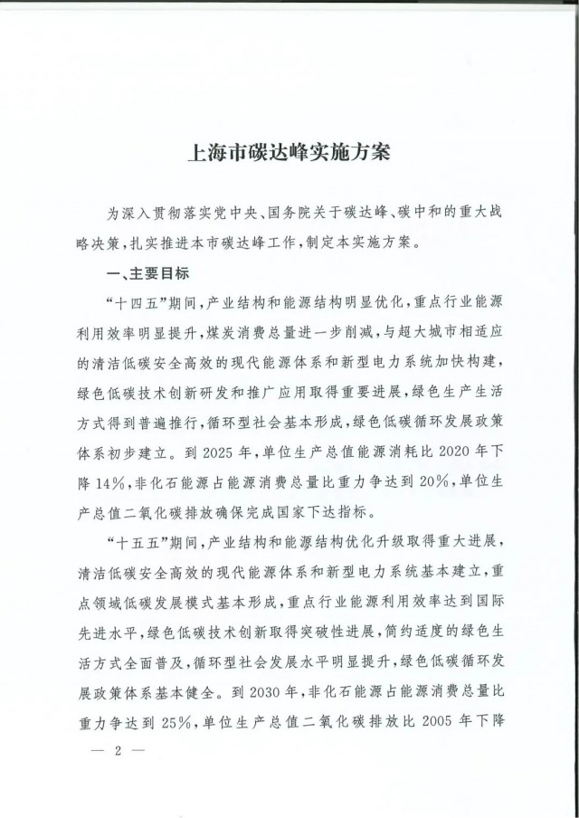近日,上海市人民政府辦公廳印發(fā)了《上海市碳達峰實施方案》?!斗桨浮访鞔_主要目標:到2025年,單位生產總值二氧化碳排放確保完成國家下達指標。到2030年單位生產總值二氧化碳排放比2005年下降70%,確保2030年前實現(xiàn)碳達峰。并計劃組織實施“碳達峰十大行動”,包括能源綠色低碳轉型行動、節(jié)能降碳增效行動、工業(yè)/城鄉(xiāng)建設/交通領域綠色低碳行動、循環(huán)經(jīng)濟助力降碳行動、綠色低碳科技創(chuàng)新行動、碳匯能力鞏固提升行動、綠色低碳全民行動、綠色低碳區(qū)域行動。