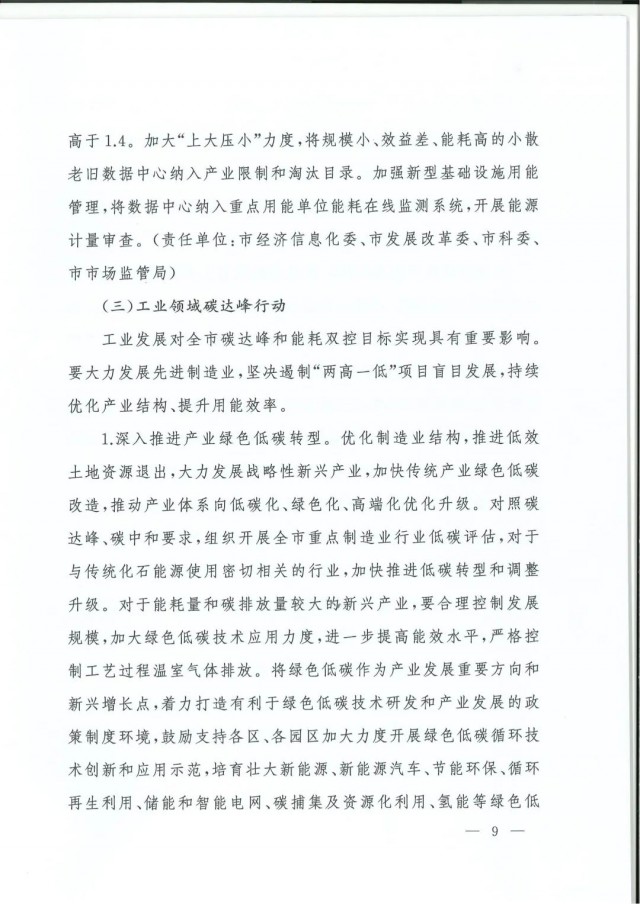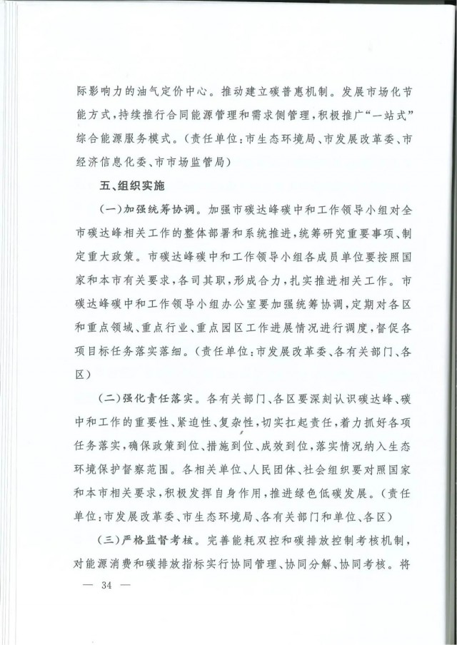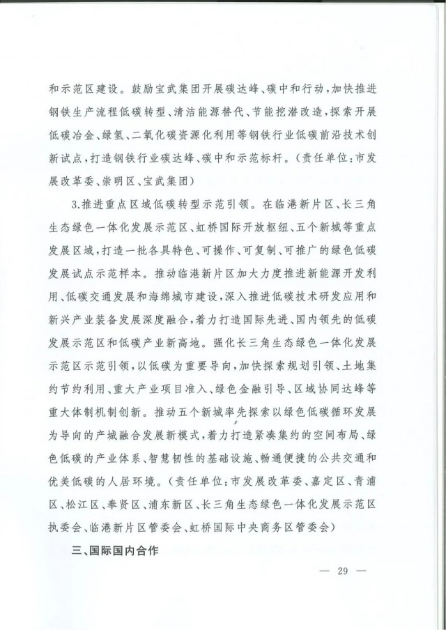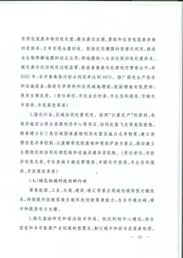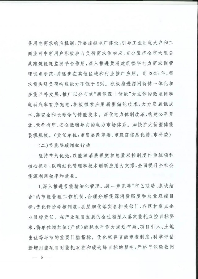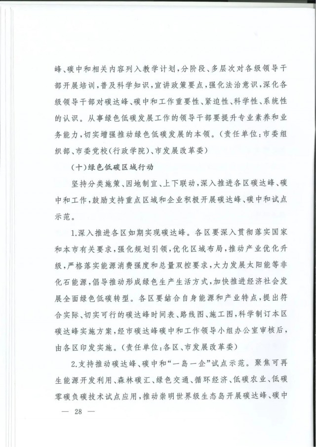 近日,上海市人民政府辦公廳印發(fā)了《上海市碳達峰實施方案》?!斗桨浮访鞔_主要目標:到2025年,單位生產總值二氧化碳排放確保完成國家下達指標。到2030年單位生產總值二氧化碳排放比2005年下降70%,確保2030年前實現(xiàn)碳達峰。并計劃組織實施“碳達峰十大行動”,包括能源綠色低碳轉型行動、節(jié)能降碳增效行動、工業(yè)/城鄉(xiāng)建設/交通領域綠色低碳行動、循環(huán)經(jīng)濟助力降碳行動、綠色低碳科技創(chuàng)新行動、碳匯能力鞏固提升行動、綠色低碳全民行動、綠色低碳區(qū)域行動。