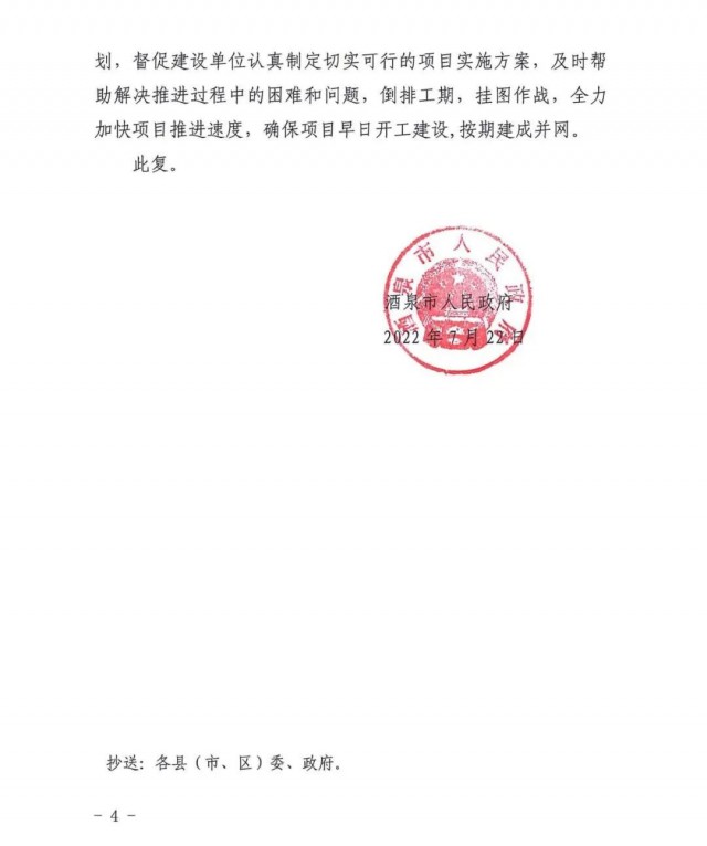 文件要求,本批下達的風光指標,光伏需在今年年底全部并網(wǎng),風電則要求在明年6月底前建成并網(wǎng)。