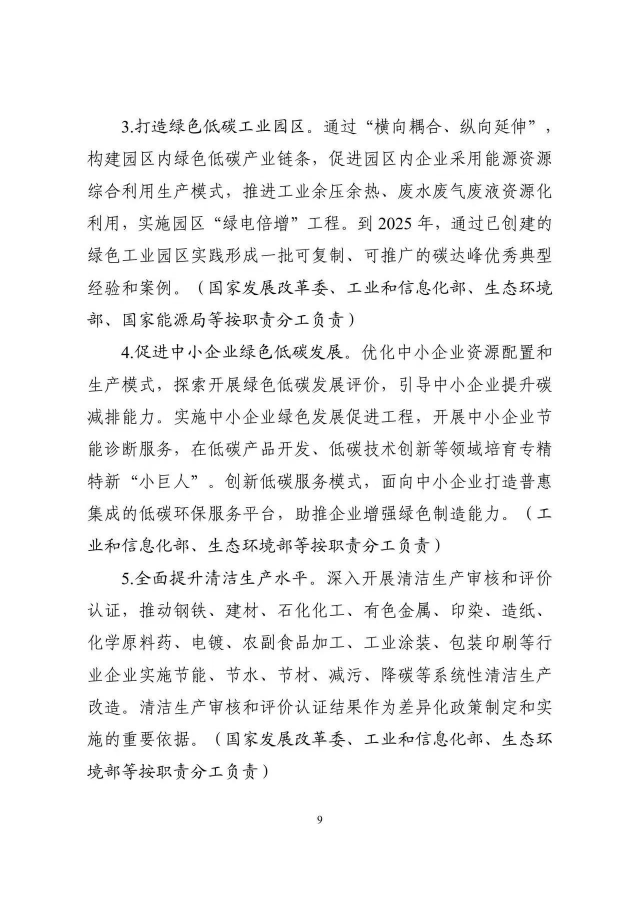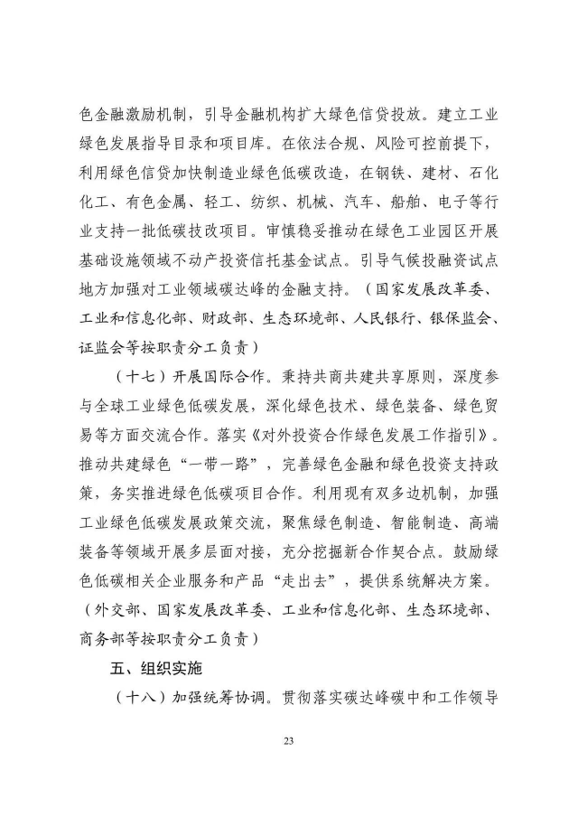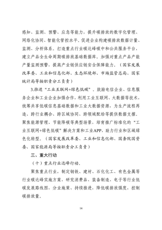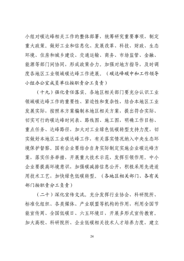 《工業(yè)領域碳達峰實施方案》已經碳達峰碳中和工作領導小組審議通過,現(xiàn)印發(fā)給你們,請認真貫徹落實。