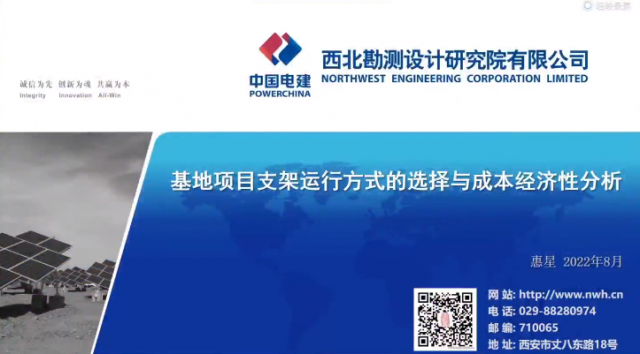 西北勘測(cè)設(shè)計(jì)研究院有限公司新能源工程院總工程師惠星作基地項(xiàng)目支架運(yùn)行方式的選擇與成本經(jīng)濟(jì)性分析。支架選擇與方案設(shè)計(jì)需要綜合考慮光伏電站所處區(qū)域位置、氣候、地貌地形等環(huán)境因素,同時(shí)還要考慮發(fā)電小時(shí)數(shù)、系統(tǒng)效率、并網(wǎng)情況等,惠星總工程師對(duì)各種情況下的光伏支架選擇與成本經(jīng)濟(jì)性分析進(jìn)行了深入分析。