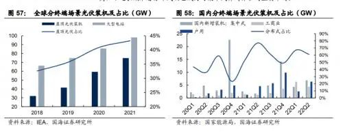 分布式市場(chǎng)發(fā)展蓬勃、空間廣闊,為背接觸電池的推廣提供了良好的條件。近年來,全球分布式光伏市場(chǎng)發(fā)展相對(duì)迅速,根據(jù)IEA數(shù)據(jù),屋頂光伏年新增裝機(jī)占比已從2018年不足35%提升到2021年接近45%的水平,意味著分布式光伏已達(dá)到總體市場(chǎng)一半左右的水平。今年以來,通脹和地緣政治等多種因素導(dǎo)致歐洲電價(jià)高企,能源安全問題突出,更是促進(jìn)了戶用分布式裝機(jī)總體呈翻倍式增長(zhǎng),一定程度反映出能源變革大背景下分布式市場(chǎng)的巨大潛力。