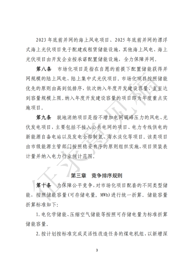 對(duì)市場(chǎng)化項(xiàng)目,按照儲(chǔ)能容量比例、儲(chǔ)能方式等因素,由高到低通過競(jìng)爭(zhēng)排序獲得并網(wǎng)資格。