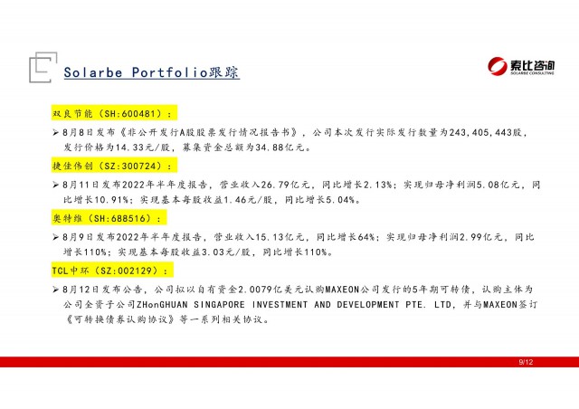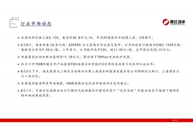 光儲投資周記系索比咨詢與買方機構(gòu)合作的日常投研回顧。每周除了簡要回顧光儲賽道政策、產(chǎn)業(yè)動態(tài)、索比獨家重大資訊等產(chǎn)業(yè)信息外,亦對二級市場光儲賽道表現(xiàn)、共建投資組合表現(xiàn)、賽道重要觀點進行跟蹤、分析研判。
