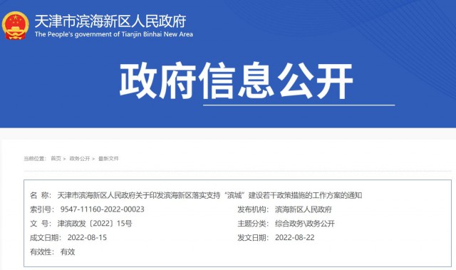 濱海新區(qū)落實支持“濱城”建設(shè)若干政策措施的工作方案的通知