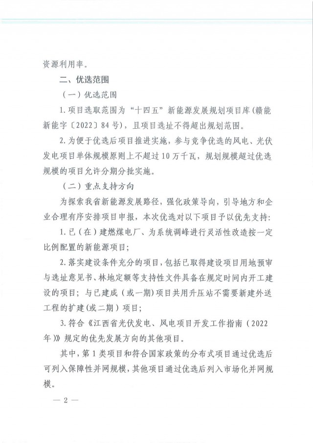 2022年8月25日,能源局印發(fā)關(guān)于開展風(fēng)電、光伏發(fā)電項(xiàng)目競爭優(yōu)選工作的通知,通知包含項(xiàng)目優(yōu)選原則、優(yōu)選范圍、申報材料要求、工作安排等內(nèi)容。