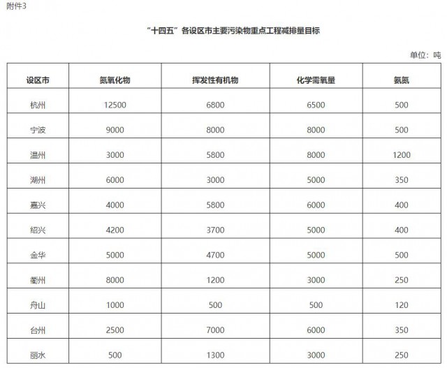 3.“十四五”各設區(qū)市主要污染物重點工程減排量目標