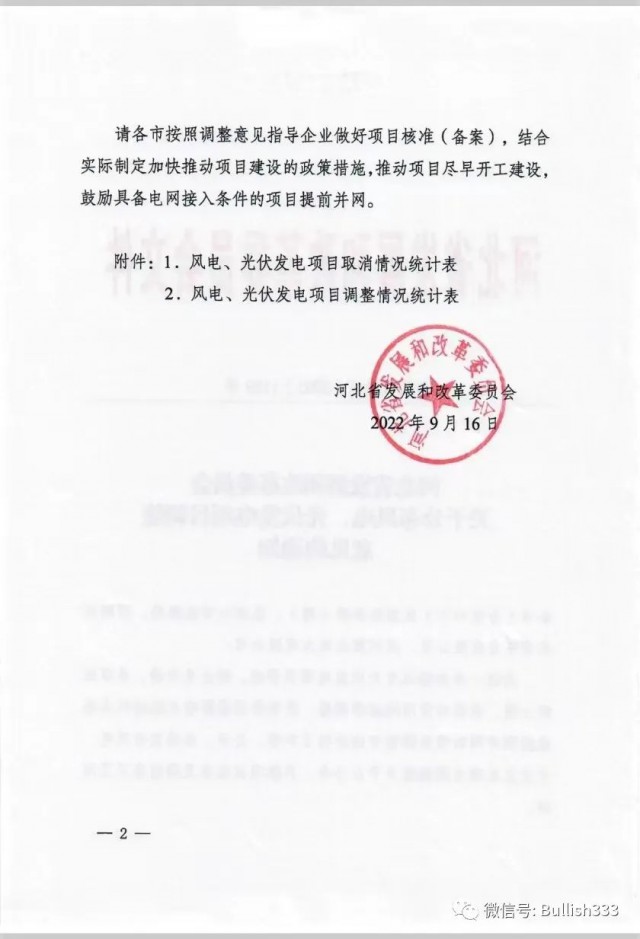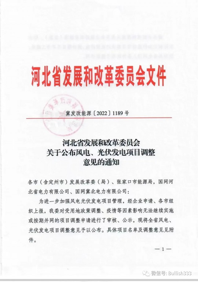 9月16日,河北發(fā)改委正式印發(fā)《關(guān)于公布風(fēng)電、光伏發(fā)電項(xiàng)目調(diào)整意見(jiàn)的通知》,對(duì)受用地政策調(diào)整、疫情等因素影響無(wú)法繼續(xù)實(shí)施或按期并網(wǎng)的項(xiàng)目進(jìn)行了調(diào)整。