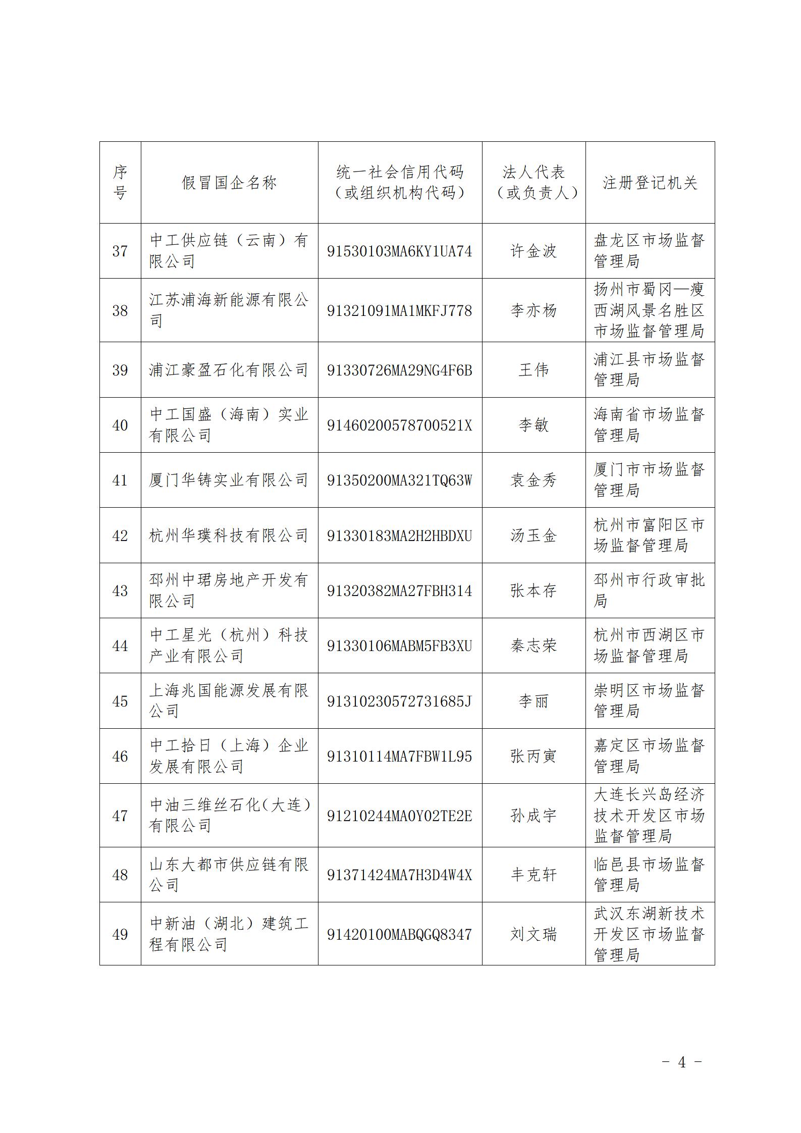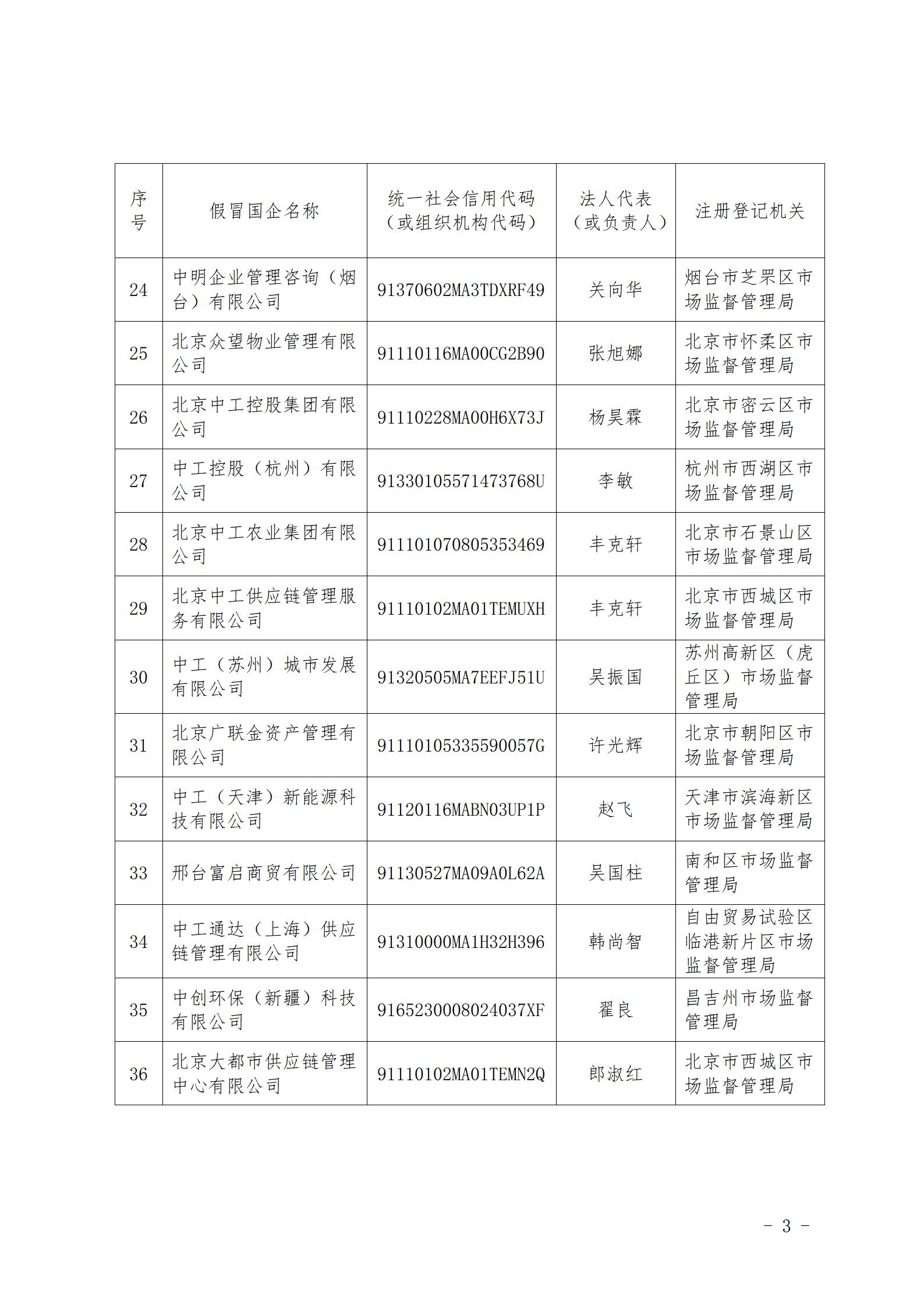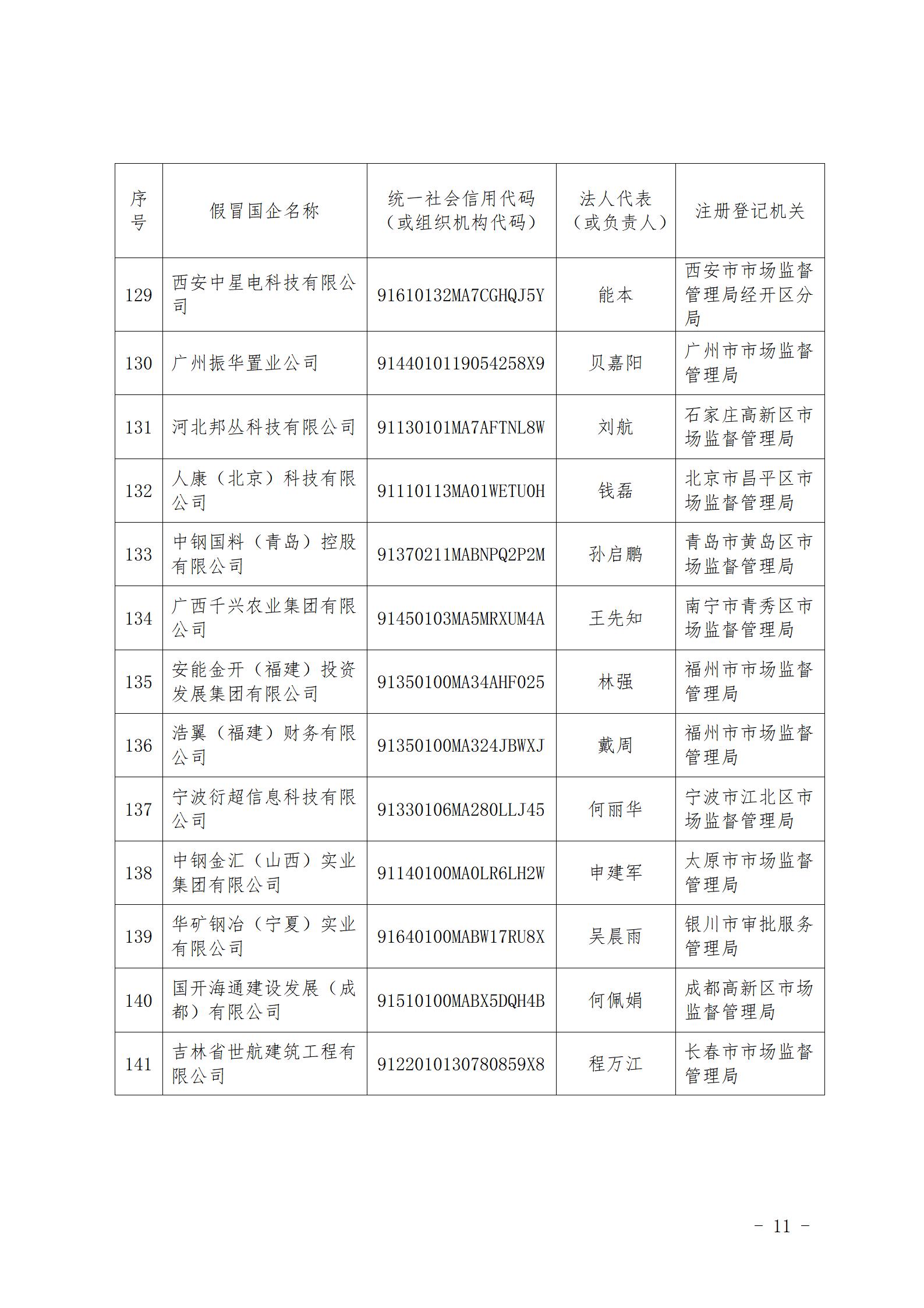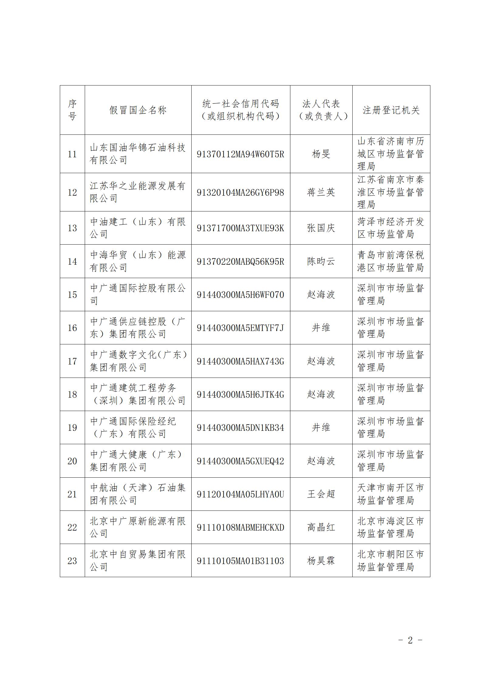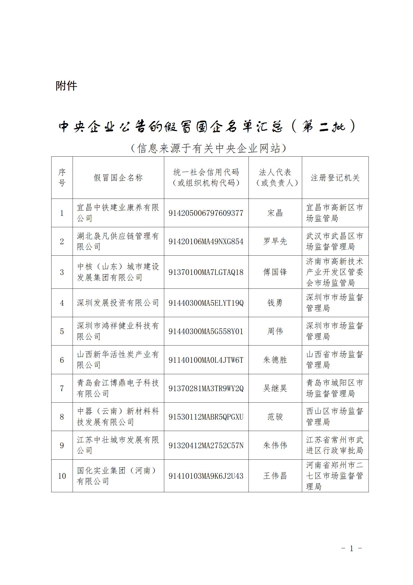 此次發(fā)布的第二批假冒中央企業(yè)名單共有175家企業(yè),包括中廣通國際控股有限公司、中氯集團(tuán)有限公司、中孚糧油產(chǎn)業(yè)集團(tuán)有限公司、中興華信經(jīng)濟(jì)擔(dān)保有限公司等。