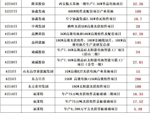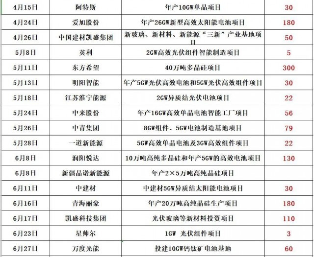 最新的消息是,通威股份擬在鹽城市投資25GW高效光伏組件項(xiàng)目,預(yù)計(jì)固定資產(chǎn)投資約40億元。同期消息,天合光能擬投資60億,在淮安簽約15GW電池片和15GW組件項(xiàng)目!