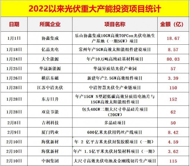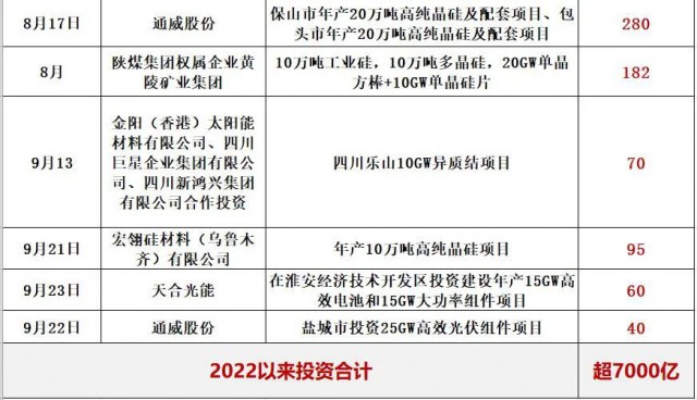 二.2022以來,光伏產(chǎn)能投資已超過7000億,特別是龍頭企業(yè)動(dòng)輒百億的投資(公告)頻頻出現(xiàn),跨界者持續(xù)涌入,產(chǎn)能投資還在提速,階段性絕對(duì)過剩風(fēng)險(xiǎn)加劇。