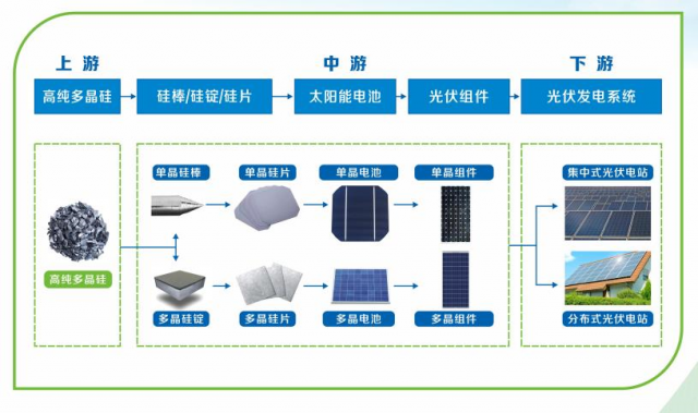 光伏產(chǎn)業(yè)是將多晶硅通過各類技術(shù)和工藝線路生產(chǎn)出太陽能電池片,并將太陽能電池經(jīng)過串并聯(lián)后進行封裝保護形成大面積的太陽能電池組件,再配合功率控制器等,形成光伏發(fā)電裝置的產(chǎn)業(yè)鏈。