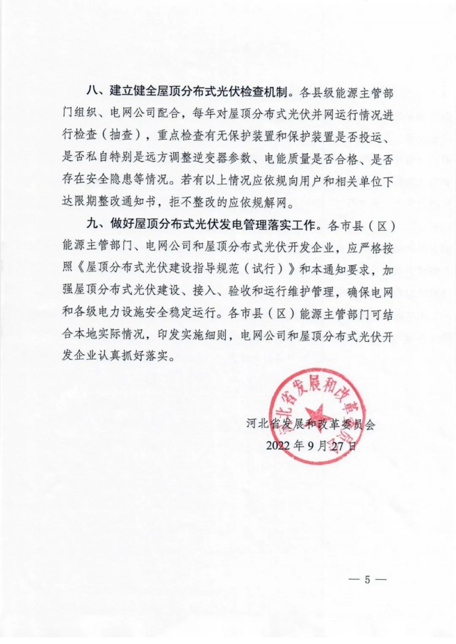 9月27日,河北省發(fā)改委發(fā)布《關(guān)于加強(qiáng)屋頂分布式光伏發(fā)電管理有關(guān)事項(xiàng)的通知》,通知指出,部分地區(qū)存在標(biāo)準(zhǔn)規(guī)范執(zhí)行不嚴(yán)、配電變壓器超容量接入等問題,給供電安全和電能質(zhì)量帶來一定影響。為進(jìn)一步促進(jìn)全省屋頂分布式光伏科學(xué)有序安全發(fā)展,通知提出: