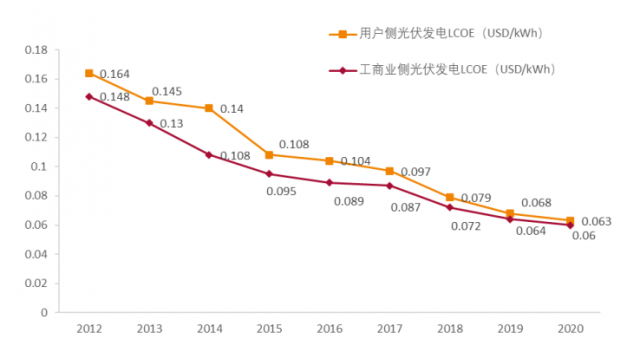 圖:2012-2020光伏發(fā)電度電成本下降趨勢(shì),來(lái)源:天風(fēng)證券