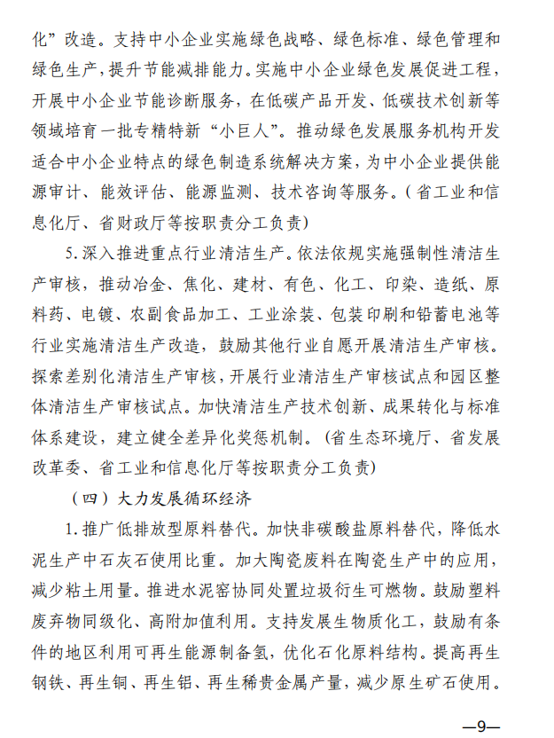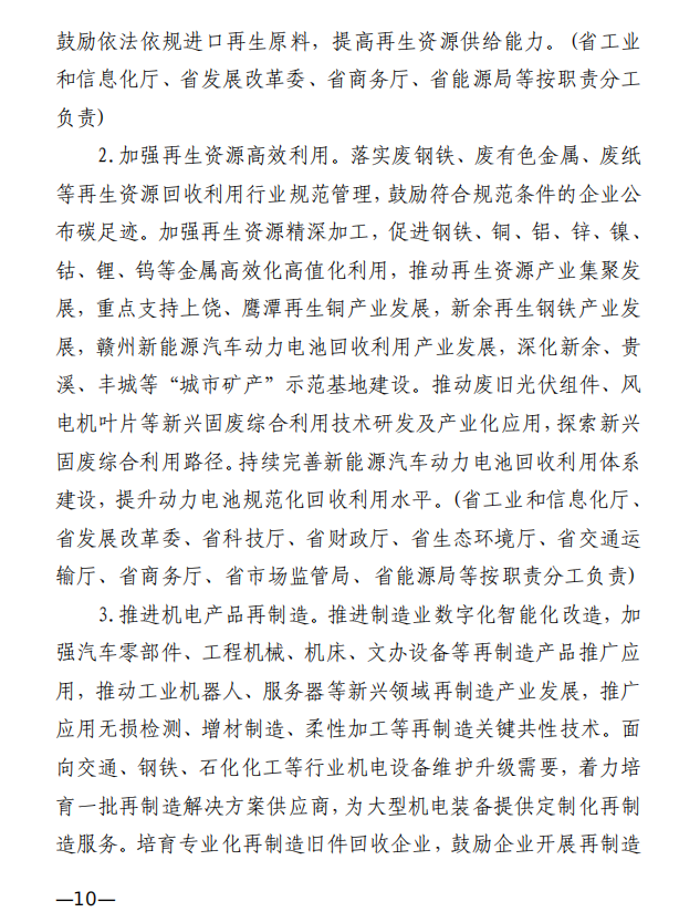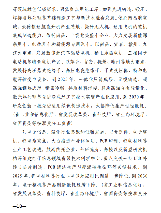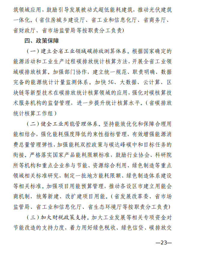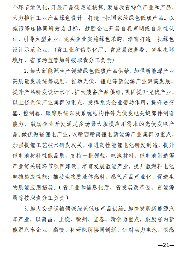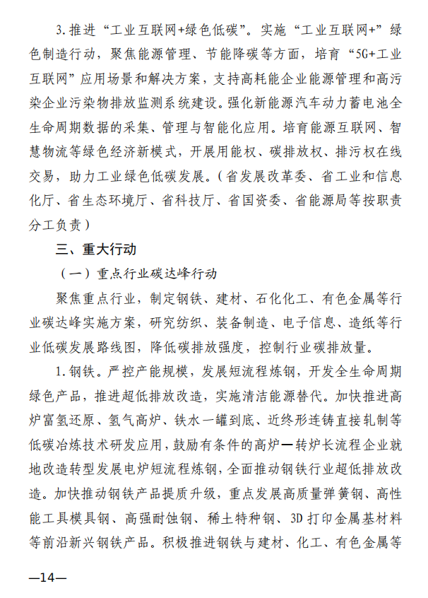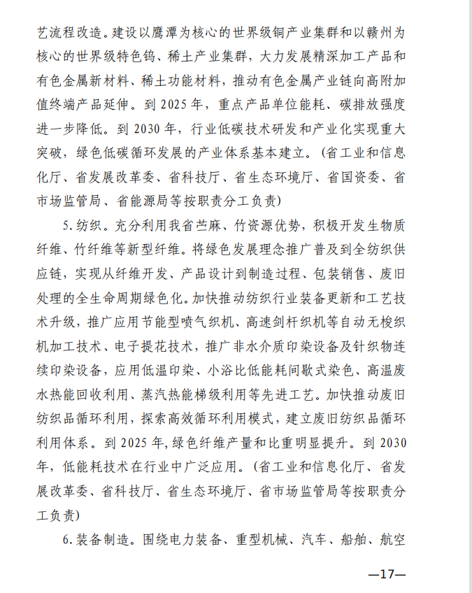 10月10日,江西省工業(yè)和信息化廳、江西省發(fā)展和改革委員會(huì)和江西省生態(tài)環(huán)境廳發(fā)布《關(guān)于印發(fā)江西省工業(yè)領(lǐng)域碳達(dá)峰實(shí)施方案的通知》,《江西省工業(yè)領(lǐng)域碳達(dá)峰實(shí)施方案》提出,“十四五”期間,江西力爭(zhēng)產(chǎn)業(yè)結(jié)構(gòu)與用能結(jié)構(gòu)優(yōu)化取得積極進(jìn)展,能源資源利用效率明顯提升,綠色工廠和綠色園區(qū)分別達(dá)到200家和50家;到2025年,全省規(guī)模以上工業(yè)單位增加值能耗較2020年下降12%以上。“十五五”期間,力爭(zhēng)一批重點(diǎn)產(chǎn)品工藝能效達(dá)到國(guó)內(nèi)領(lǐng)先水平,基本建立以高效、綠色、循環(huán)、低碳為特征的現(xiàn)代工業(yè)體系;確保工業(yè)領(lǐng)域二氧化碳排放在2030年前達(dá)峰。