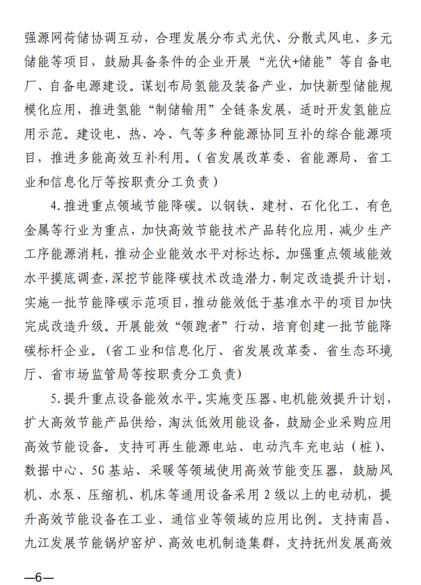方案提出,逐步擴(kuò)大可再生能源供給。加快工業(yè)綠色微電網(wǎng)建設(shè),增強(qiáng)源網(wǎng)荷儲(chǔ)協(xié)調(diào)互動(dòng),合理發(fā)展分布式光伏、分散式風(fēng)電、多元 儲(chǔ)能等項(xiàng)目,鼓勵(lì)具備條件的企業(yè)開(kāi)展“光伏+儲(chǔ)能”等自備電廠、自備電源建設(shè)。謀劃布局氫能及裝備產(chǎn)業(yè),加快新型儲(chǔ)能規(guī)模化應(yīng)用,推進(jìn)氫能“制儲(chǔ)輸用”全鏈條發(fā)展,適時(shí)開(kāi)發(fā)氫能應(yīng)用示范。建設(shè)電、熱、冷、氣等多種能源協(xié)同互補(bǔ)的綜合能源項(xiàng)目,推進(jìn)多能高效互補(bǔ)利用。