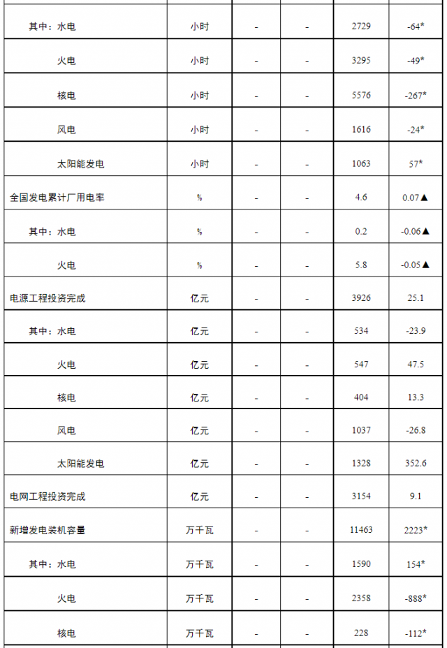 1-9月份,全國發(fā)電設(shè)備累計平均利用2799小時,比上年同期減少87小時。其中,火電3295小時,比上年同期減少49小時;核電5576小時,比上年同期減少267小時;風(fēng)電1616小時,比上年同期減少24小時。