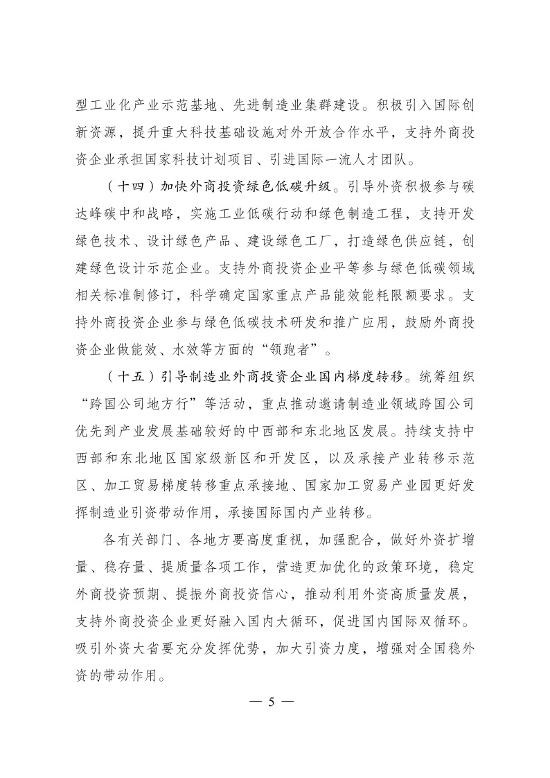 促進外資擴增量穩(wěn)存量提質(zhì)量的若干政策措施》的通知