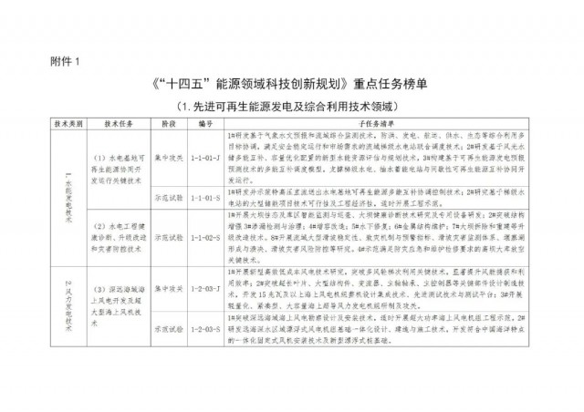 附件:1.《“十四五”能源領域科技創(chuàng)新規(guī)劃》重點任務榜單