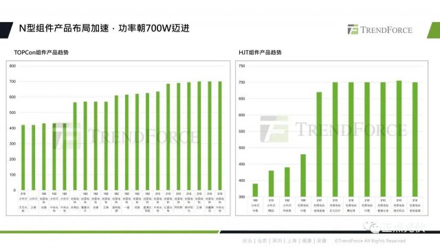 隨著n型技術(shù)不斷升級加速,采用大尺寸加n型的技術(shù),組件功率可以達到700W+。實現(xiàn)了技術(shù)性的突破,這也是未來光伏行業(yè)新技術(shù)、新產(chǎn)品的開發(fā)方向。