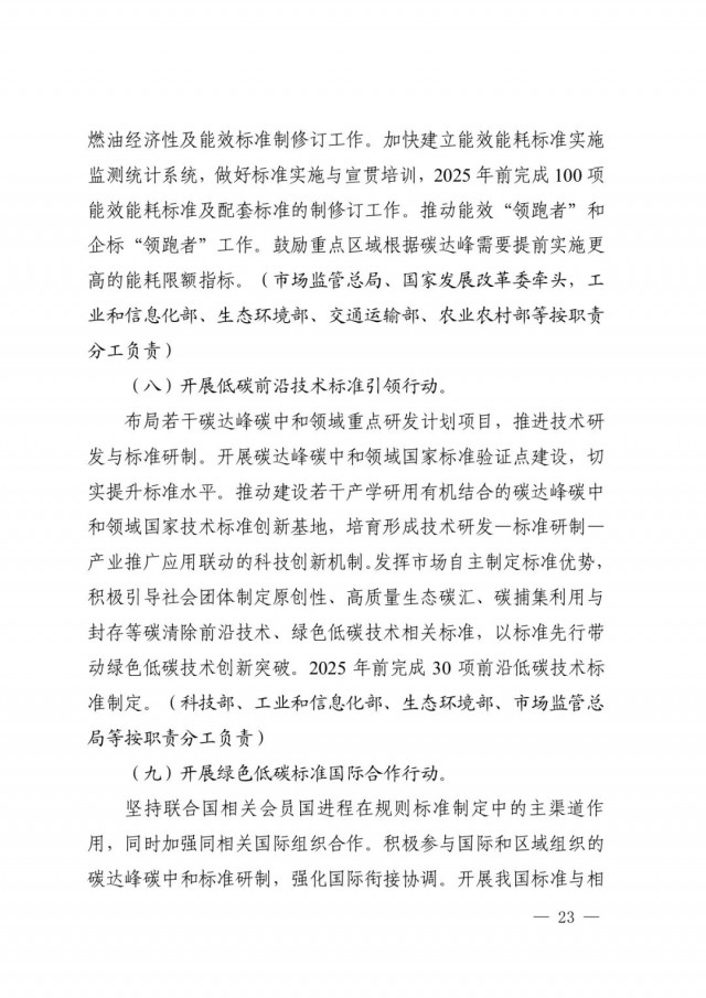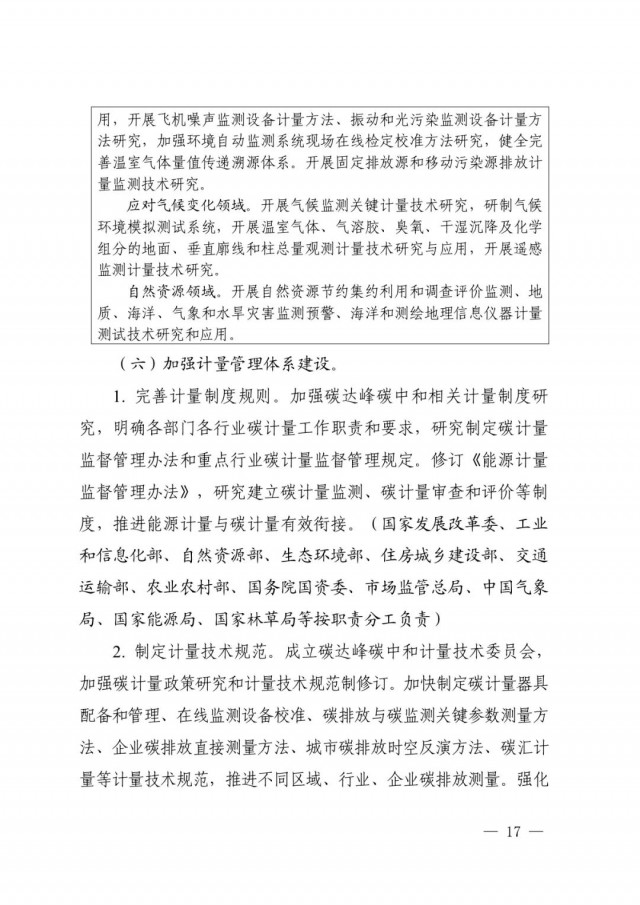 作為碳達(dá)峰碳中和“1+N”政策體系中重要文件之一,提出了完善碳排放基礎(chǔ)通用標(biāo)準(zhǔn)體系、加強(qiáng)重點(diǎn)領(lǐng)域碳減排標(biāo)準(zhǔn)體系建設(shè)、加快布局碳清除標(biāo)準(zhǔn)體系、健全市場(chǎng)化機(jī)制標(biāo)準(zhǔn)體系、完善計(jì)量技術(shù)體系、加強(qiáng)計(jì)量管理體系建設(shè)、健全計(jì)量服務(wù)體系7個(gè)方面的24項(xiàng)重點(diǎn)任務(wù),明確了實(shí)施碳計(jì)量科技創(chuàng)新工程、碳計(jì)量基礎(chǔ)能力提升工程、碳計(jì)量標(biāo)桿引領(lǐng)工程、碳計(jì)量精準(zhǔn)服務(wù)工程、碳計(jì)量國(guó)際交流合作工程5項(xiàng)重點(diǎn)工程,開展雙碳標(biāo)準(zhǔn)強(qiáng)基行動(dòng)、百項(xiàng)節(jié)能降碳標(biāo)準(zhǔn)提升行動(dòng)、低碳前沿技術(shù)標(biāo)準(zhǔn)引領(lǐng)行動(dòng)、綠色低碳標(biāo)準(zhǔn)國(guó)際合作行動(dòng)4項(xiàng)重點(diǎn)行動(dòng),并對(duì)協(xié)調(diào)推動(dòng)各項(xiàng)工作落實(shí)提出相應(yīng)要求。