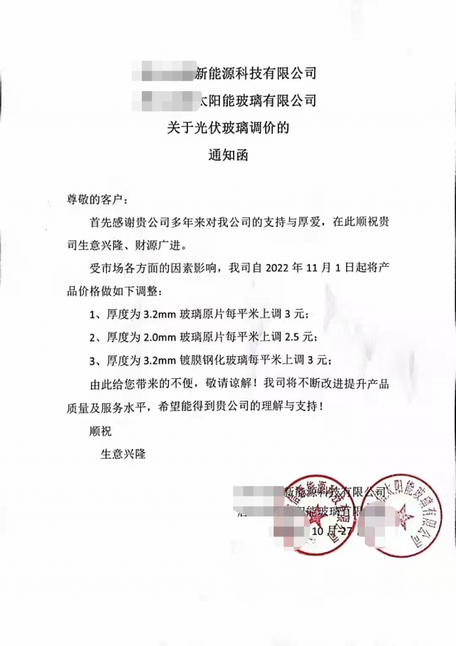 除了電池之外,近日有消息稱(chēng),光伏玻璃也在醞釀漲價(jià),根據(jù)某企業(yè)調(diào)價(jià)函,玻璃價(jià)格上漲2.5-3元/平方米。