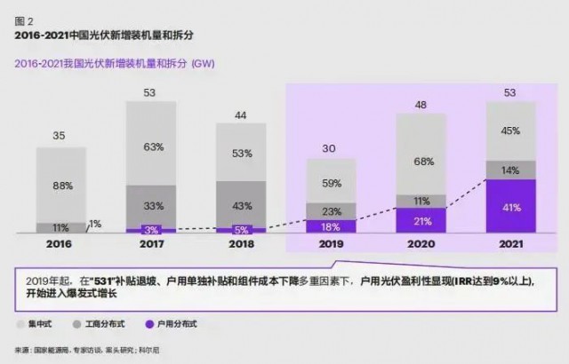 而隨著政策和盈利性驅動,以及“整縣推進”戰(zhàn)略加持,未來以戶用光伏為代表的分布式能源發(fā)展將異軍突起,成為不可忽視的動力和趨勢之一。