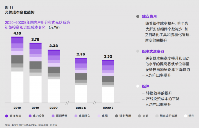成本的下降主要受組件、逆變器和建安費用下降驅動。