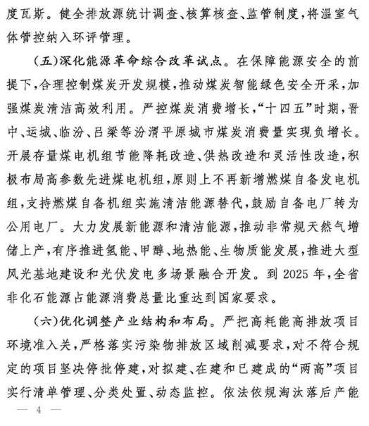 意見提出,在保障能源安全的前提下,合理控制煤炭開發(fā)規(guī)模,推動(dòng)煤炭智能綠色安全開采,加強(qiáng)煤炭清潔高效利用。大力發(fā)展新能源和清潔能源,推動(dòng)非常規(guī)天然氣增儲(chǔ)上產(chǎn),有序推進(jìn)氫能、甲醇、地?zé)崮?、生物質(zhì)能發(fā)展,推進(jìn)大型風(fēng)光基地建設(shè)和光伏發(fā)電多場(chǎng)景融合開發(fā)。到2025年,全省非化石能源占能源消費(fèi)總量比重達(dá)到國(guó)家要求。