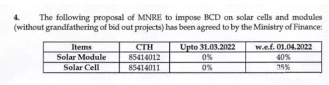印度太陽能制造商協(xié)會(ISMA)請愿提出后,印度政府從2022年4月1日起對光伏電池和組件分別征收25%和40%的基本關稅,征收的關稅涵蓋了被調(diào)查產(chǎn)品的整個范圍,一定程度上緩解了印度本土光伏行業(yè)的價格壓力。