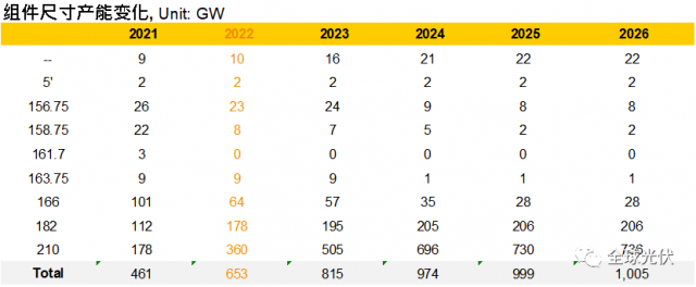 (來(lái)源:PV Infolink,尺寸產(chǎn)能為設(shè)備最大兼容規(guī)格)