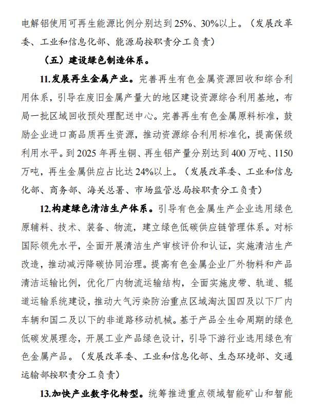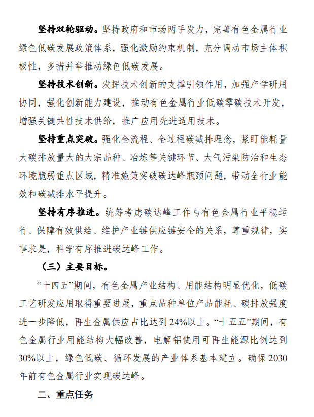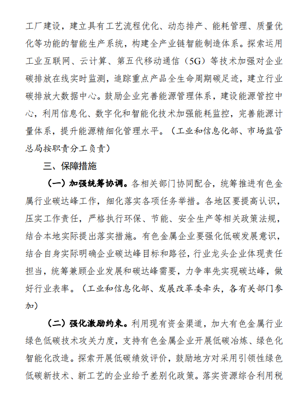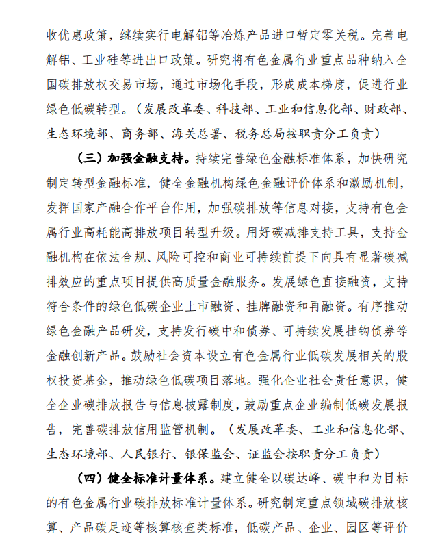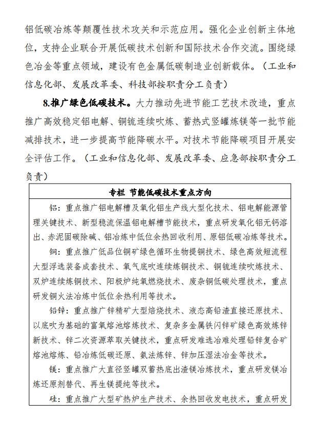 11月15日,工業(yè)和信息化部、國家發(fā)展和改革委員會和生態(tài)環(huán)境部發(fā)布《關于印發(fā)有色金屬行業(yè)碳達峰實施方案的通知》,(以下簡稱通知)通知指出,控制化石能源消費。推進有色金屬行業(yè)燃煤窯爐以電代煤,提升用能電氣化水平。在氣源有保障、氣價可承受的條件下有序推進以氣代煤。推動落后自備燃煤機組淘汰關?;虿捎们鍧嵢剂咸娲?。嚴禁在國家政策允許的領域以外新(擴)建燃煤自備電廠,推動電解鋁行業(yè)從使用自備電向網(wǎng)電轉化。支持企業(yè)參與光伏、風電等可再生能源和氫能、儲能系統(tǒng)開發(fā)建設。加強企業(yè)節(jié)能管理,嚴格落實國家強制性節(jié)能標準,持續(xù)開展工業(yè)節(jié)能監(jiān)察,規(guī)范企業(yè)用能行為。