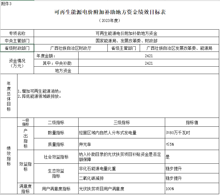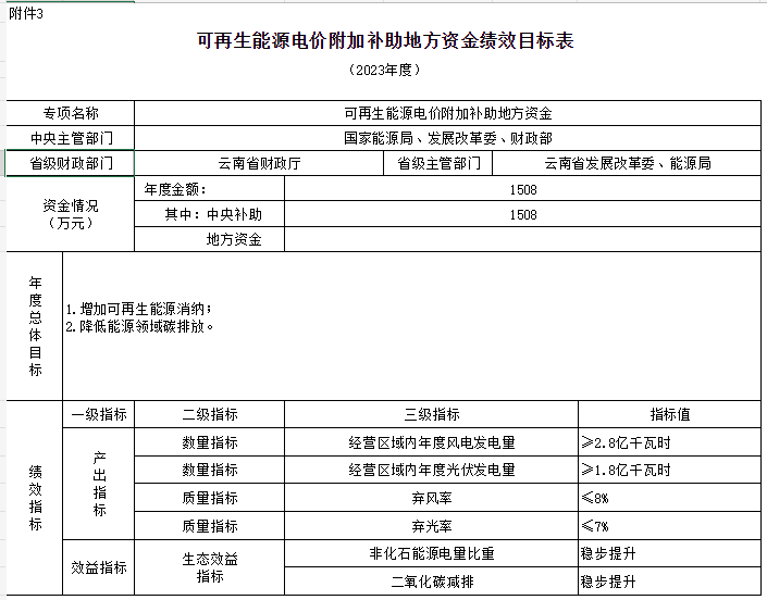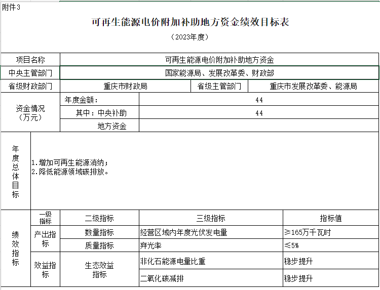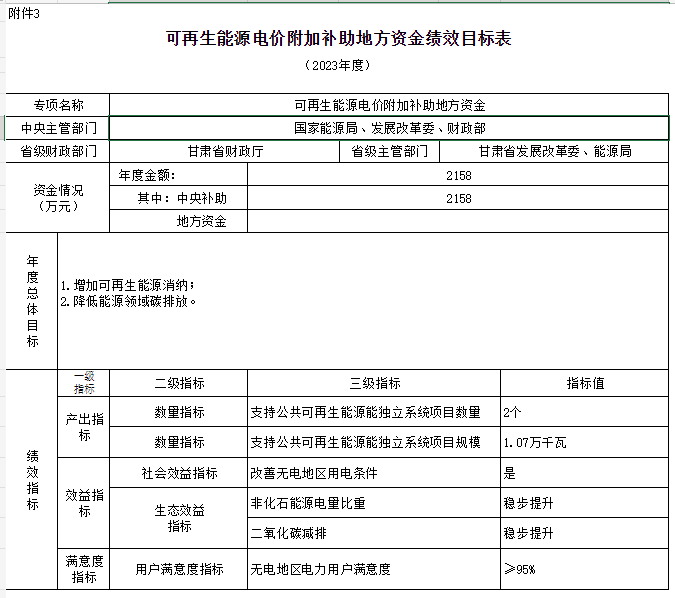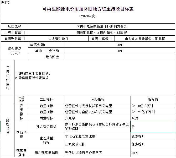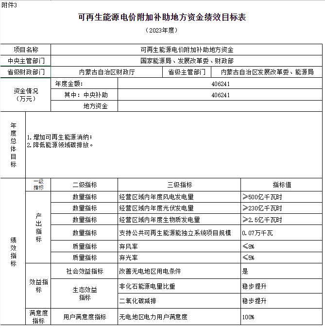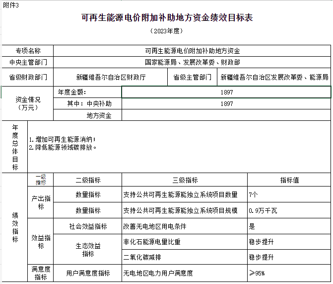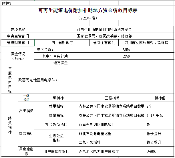 附件:1.可再生能源電價(jià)附加補(bǔ)助地方資金預(yù)算匯總表3.可再生能源電價(jià)附加補(bǔ)助地方資金績效目標(biāo)表