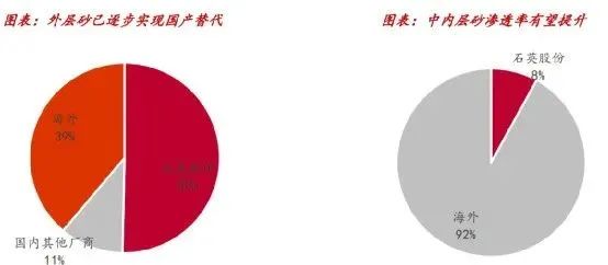 光伏石英坩堝產(chǎn)品端:光伏行業(yè)由于產(chǎn)品精密度程度高、技術(shù)發(fā)展快,對石英坩堝的純度、精度要求日益嚴(yán)格。我國的石英制品行業(yè)起步較晚,只有少數(shù)規(guī)?;髽I(yè)的石英坩堝技術(shù)方面達(dá)到先進(jìn)水平。技術(shù)上來看,近幾年我國石英制品行業(yè)的技術(shù)進(jìn)步較為明顯,尤其是石英坩堝技術(shù)水平與國外企業(yè)產(chǎn)品的差距逐步縮小,在坩堝尺寸、純度、拉晶時間和拉晶次數(shù)等方面均取得顯著進(jìn)步。此外,國內(nèi)石英坩堝具有一定的成本優(yōu)勢,在質(zhì)量和性能等方面與進(jìn)口石英坩堝的差距正逐漸縮小。這些都為國產(chǎn)化創(chuàng)造了條件。從細(xì)分部件來看,外層砂已基本實現(xiàn)國產(chǎn)替代,中內(nèi)層砂產(chǎn)品和客戶認(rèn)可度逐步提升。目前石英股份的高純石英砂仍以外層砂為主,我們預(yù)計石英股份在中內(nèi)層砂質(zhì)量以及客戶認(rèn)可度上均有提升,并有望逐步提高中內(nèi)層砂的滲透率。我們預(yù)計21年石英股份外層砂份額約50%,中內(nèi)層砂份額約8%。